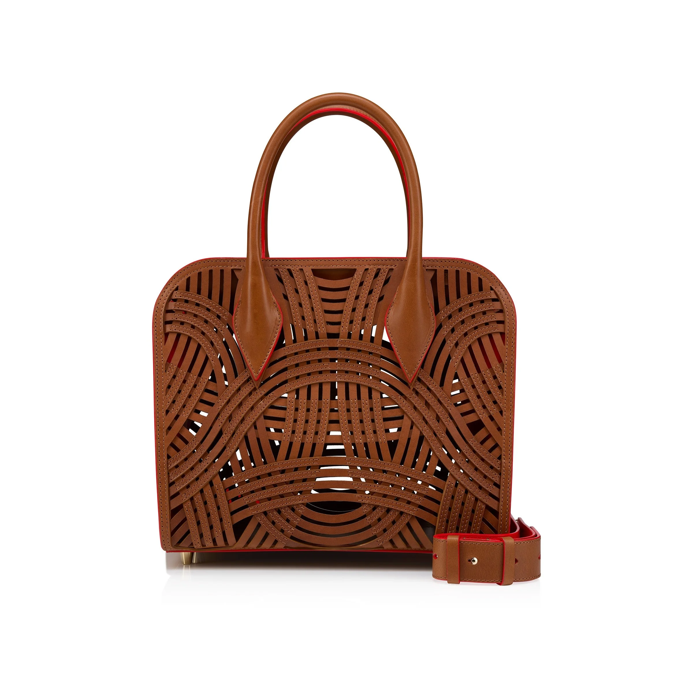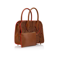 The timeless Eloise medium handbag has urban lines enhanced by iconic Loubi red edgepaint. This sophisticated Maison Christian Louboutin handbag is crafted from intertwined Cuoio brown calf leather bands. Part of a capsule collection, this imaginative finish has been designed by Australian artist Otis Hope Carey, depicting the spirit of the ocean (Gaagal in the Gumbaynggir language). - 2 adjustable 13 cm handles and 1 adjustable shoulder strap, so it can be hand-held or worn over the shoulder. - Zipped main compartment - 1 flat front pocket - 1 zipped inside pocket - Dimensions: H 26.5 x L 31 x W 15.5 cm Product information Reference: 3255043BG71 Color: Cuoio Material: Calf leather Dimensions: 265mm x 310mm x 155mm