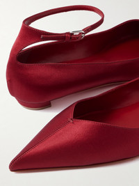 EXCLUSIVE AT NET-A-PORTER. Christian Louboutin's 'Erozeena' flats bring the drama of evening shoes to an everyday style. Crafted from lustrous satin, they're shaped with an elegant pointed toe and set on the label's signature red lacquered sole for unmistakable impact.