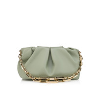 The Eva shoulder bag in size small reflects sophistication with its sleek folds. Crafted from lamb nappa leather in Haiiro green, a gold charm evocative of the iconic Louboutin sole adds an eye-catching detail. This sophisticated Maison Christian Louboutin model can be carried by hand or over the shoulder using the gold chain. This cute and highly fashionable bag is perfect for the evening. The nappa leather, with its semi mat look and slightly visible natural grain, exudes quality and offers a timeless and sophisticated look. - Magnetic fastening - 1 main compartment - 1 card slot - 1 chain 89 inch length 43.2 inch drop/46 cm length 17 cm drop - Dimensions: - H 5.5 x L 9.8 x W 3.9 inches - H 14 x L 25 x W 10 cm Product information Reference: 1265023E823 Color: Haiiro Material: Lamb nappa leather Dimensions: 140mm x 250mm x 100mm