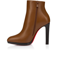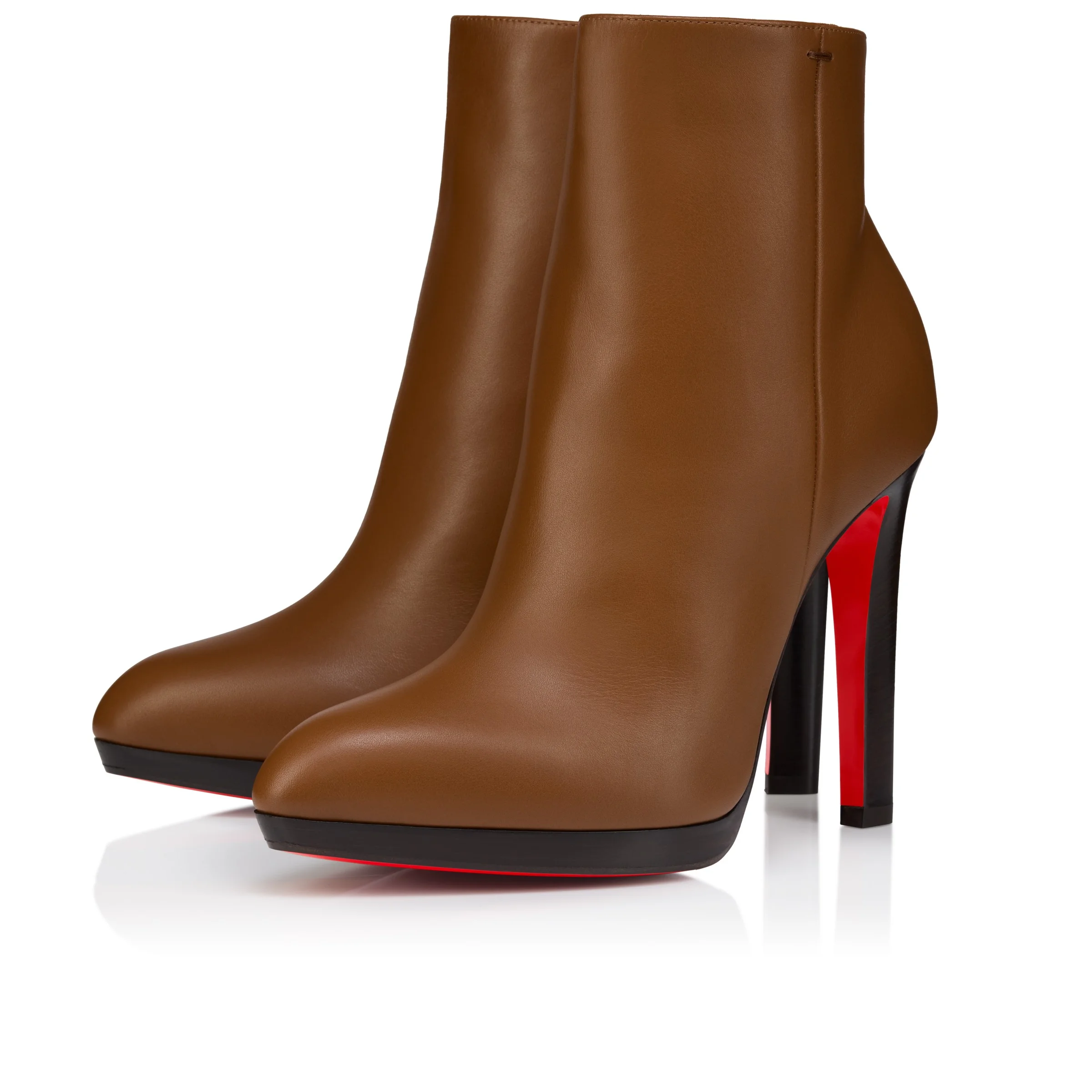 The Fannylove Booty blends simplicity with impact. This elegant ankle boot features a discreet platform for added comfort, an almond-shaped toe and a 120 mm sculptural heel that appears slim from the back yet bold and structured from the side, revealing a glimpse of Loubi red. It is crafted in all-over Cuoio brown calf leather with a padded insole. Product information Reference: 12601857236 Color: Cuoio Material: Calf leather Heel Height: 120 mm