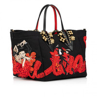 A fiery celebration of Andalusia's exquisite craftsmanship and rich flamenco culture, the Maison’s annual limited-edition cabas offering was developed in collaboration with the inimitable Rossy de Palma, actress and long-time friend of Christian’s. Making its début with a resounding ¡Olé!, the Flamencaba in size small tote is embellished with two Flamenco dancers in the likeness of Christian and Rossy, the polka-dotted frills of her Loubi red dress overflowing from the bag and recalling the vintage fabric-embellished postcards so typical of Spain. A sequin studded ‘Louboutin’ embroidery twirls its way around the body of the tote, while on the handles, Caraspikes become gold-toned Sevillana spikes, inspired by Seville’s architectural heritage and bringing an added touch of opulence to this everyday tote bag. - 2 handles, handle drop dimensions: 5.5 inches/ 14 cm - 1 adjustable and removable strap, strap length: 41 - 46 inches/103 - 117 cm - 1 inner flat pocket - A security hook - Dimensions: L 10,6 x H 8,7 x W 9,8 inch L 27 x H 22 x L 25 cm Product information Material: Fabric Color: Black Reference: 3235175B283 Dimensions: 220mm x 270mm x 250mm Collection: Fall/Winter 23