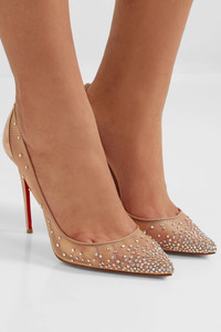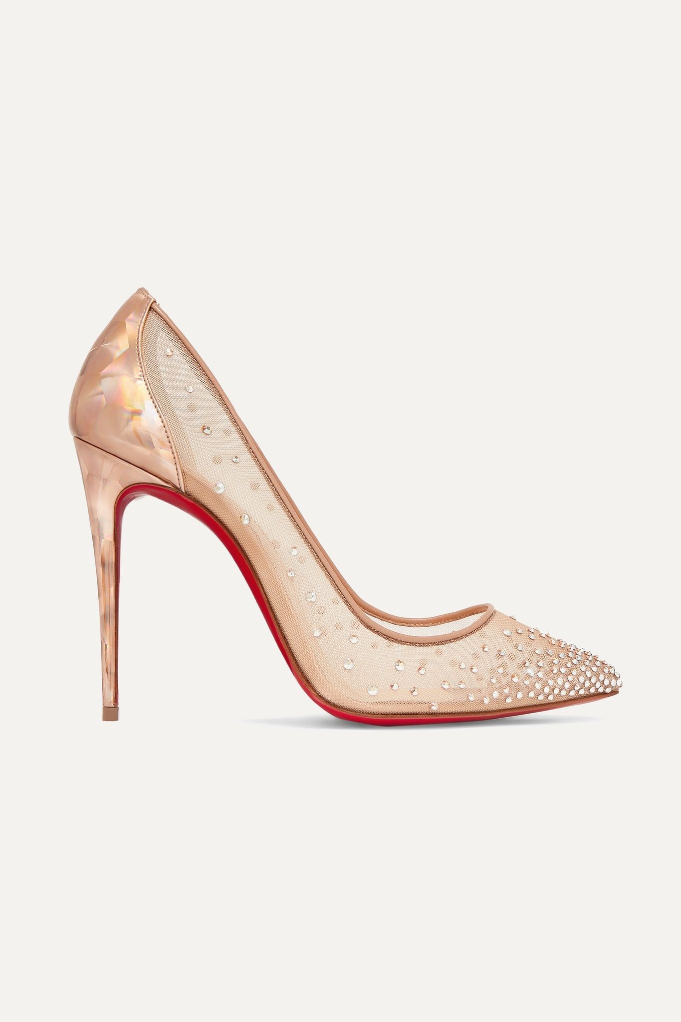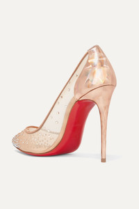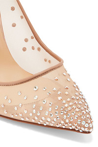 Follies 100 crystal-embellished mesh and metallic leather pumps