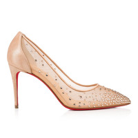 A real-life glass slipper, the Follies Strass really makes a statement. A classically shaped stiletto with an 85 mm elegant heel, this iconic pump is adorned with hand-placed shimmering strass from toe to tip. Beneath the myriad of strass, the vamp is crafted from mesh, a nod to Christian’s love of transparency. For an ultra-luxurious feel, the heel on this neutral Light Silk version is wrapped in Suede Lamé. Product information Material: Mesh Color: Beige Reference: 1190715F065 Heel height: 85 mm Collection: Summer 19