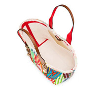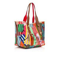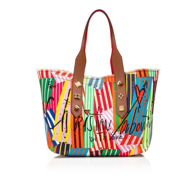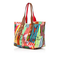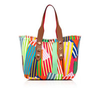 The Frangibus tote bag in size medium is set apart by its modern yet elegant lines. Decked out in multicolored cotton canvas with a graphic print inspired by beach deckchairs, it is finished with the Maison Christian Louboutin signature. Its two Coconut brown calf leather handles are embellished with gold spikes for a bold appeal. This bag can be carried by hand or worn over the shoulder.- 1 pocket with magnetic button- 2 handles- dimensions: 280 x 380 x 200 mm The print is randomly placed, each model is therefore unique and mayslightly differ from the product photo. PRODUCT INFORMATION Reference: 3225018T309 Color: Multicolor Material: Nylon Dimensions: 280mm x 380mm x 200mm Collection: Fall Winter 22