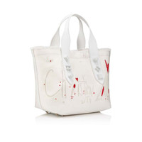 The Frangibus by the Maison Christian Louboutin is a classic tote bag with a twist: the raw-cut “frange” (or fringing) detail on the top section of the bag makes for an edgy look. This small version features a soft, semi-structured design in Bianco white Toile CL Print fabric, with a phosphorescent effect, playful Christian Louboutin logo, and red splash details. - Dimensions: H 220 x L 270 x W 140 mm - 2 top handles with spikes mix - 1 pocket with button - Detachable strap PRODUCT INFORMATION Reference: 3215121W456 Color: White Material: Cotton Dimensions: 220mm x 270mm x 140mm Collection: Fall Winter 21