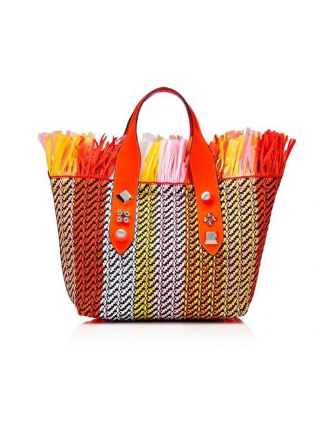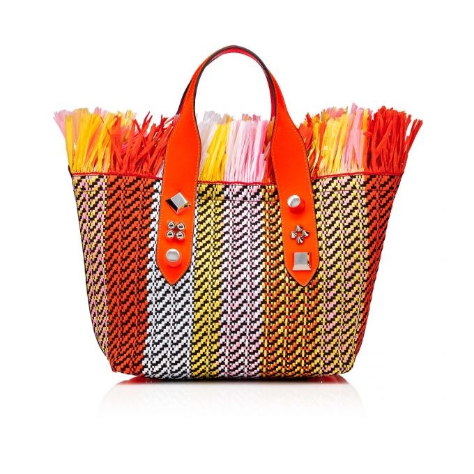 The modern Frangibus small bag stands out on account of its graphic lines. Made from red leather and raffia, this version has a multicolored fringed trim. Its two handles are embellished with silver spikes, for a bold style. This model can be worn over the shoulder or across the body.- 1 pocket with magnetic button- 2 handles- adjustable and removable shoulder strap- dimensions: 220 x 270 x 140 mm PRODUCT INFORMATION Reference: 1225326T097 Color: MULTI/SUNRISE/GOLD Material: Raphia Dimensions: 220mm x 270mm x 140mm Collection: Summer 22