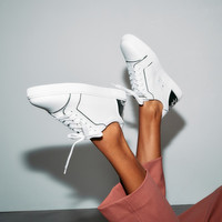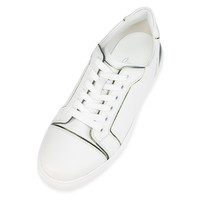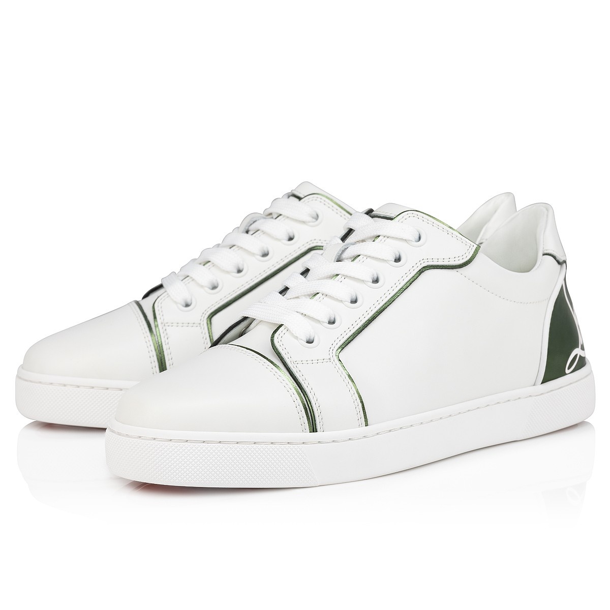 The timeless Fun Vieira sneaker has an irresistibly sleek design. Crafted in white calf leather and laminated Vertlaine green leather, it has a leather trim for an elegant finish. A contrasting Maison Christian Louboutin signature adorns the back. Product information Material: Calf leather Color: Bianco Reference: 12409286189 Collection: Summer 24