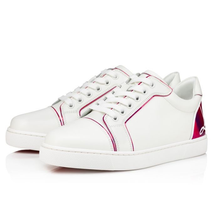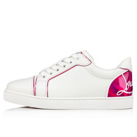 With its iconic, elegant lines, showcasing Maison Christian Louboutin's expertise, the Fun Vieira low top sneaker features nude leather lining. This sleek, sporty model is crafted in white calf leather. At the back it features a patent Psychic Fuxia pink panel adorned with the creator's signature. PRODUCT INFORMATION Reference: 3221293T768 Color: Pink Material: Calf leather Collection: Fall Winter 22