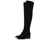 Inspired the classic Western boot, the Gazellou is as elegant as its namesake, the gazelle. For that touch of inimitable Louboutin savoir-faire, this very wearable over-the-knee boot plays on a masculine/feminine silhouette, finished with equestrian-like stitching. The upper is meticulously crafted from Crosta suede and the almond-shaped toe with casual welt is balanced by the rounded 55 mm stacked leather heel, finished with a signature red sole.