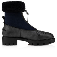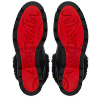 Inspired by aviator shearling jackets, this Maison Christian Louboutin Glory Wool ankle boot features distinctive lining in shearling, is set on a bold, chunky, lug sole in Gomme Terrazzo, a recycled rubber material, and is embellished by a leather patch with a signature embossed CL varsity logo and leather trim. The versatile collar can be worn fitted on the leg or folded back, for an urban yet sporty look. PRODUCT INFORMATION Reference: 3221115CM47 Color: BLACK Material: Rubber Collection: Fall Winter 22