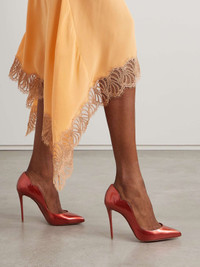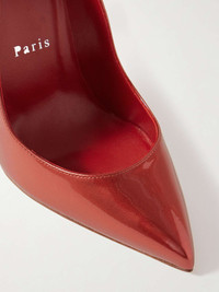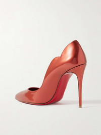 EDITORS'NOTES Christian Louboutin has said his signature red soles were inspired by the color of his assistant's nail polish. A much-loved design, these 'Hot Chick' pumps are expertly crafted from pearlescent patent-leather and have sleek scalloped edges designed to reveal a glimpse of the foot. They're set on 100mm stiletto heels and have glamorous curved arches. SIZE & FIT - Fits true to size, take your normal size - Those with wide feet may wish to take the next size up - Italian sizing DETAILS & CARE - Heel measures approximately 100mm/ 4 inches - Red patent-leather - Slip on - Designer color: Rodeo
