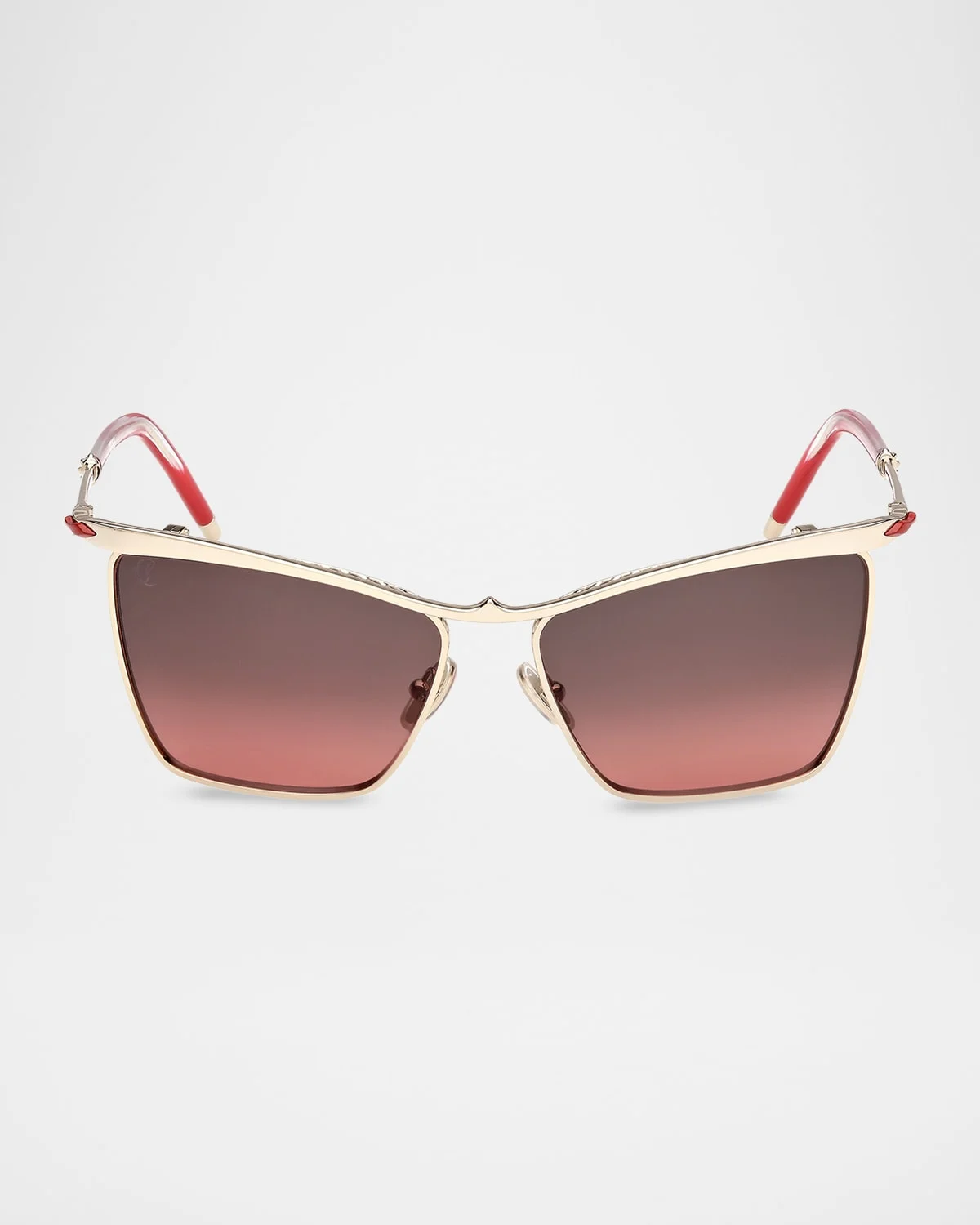 Christian Louboutin "Hot Chick" sunglasses feature goldtone metal frames with a square shape and an elegant front construction. Eye/bridge/temple (in mm): 5615135 Zeiss smokemirrored lenses Adjustable nose pads 100% UVA/UVB protection Can be fitted with prescription lenses Cleaning cloth and case included Metal Made in Italy