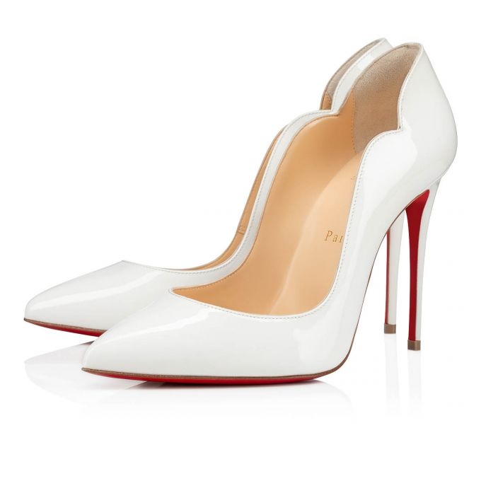 A modern style, the Hot Chick stiletto pump is made of white patent leather. Its pointed-toe and curved openings unveil the foot with elegance. Its 100mm heel raises the silhouette with weightlessness, marking the savoir-faire of the Maison Christian Louboutin. PRODUCT INFORMATION Reference: 1190911W156 Color: SNOW Material: PATENT Heel Height: 100 mm Collection: Summer 19
