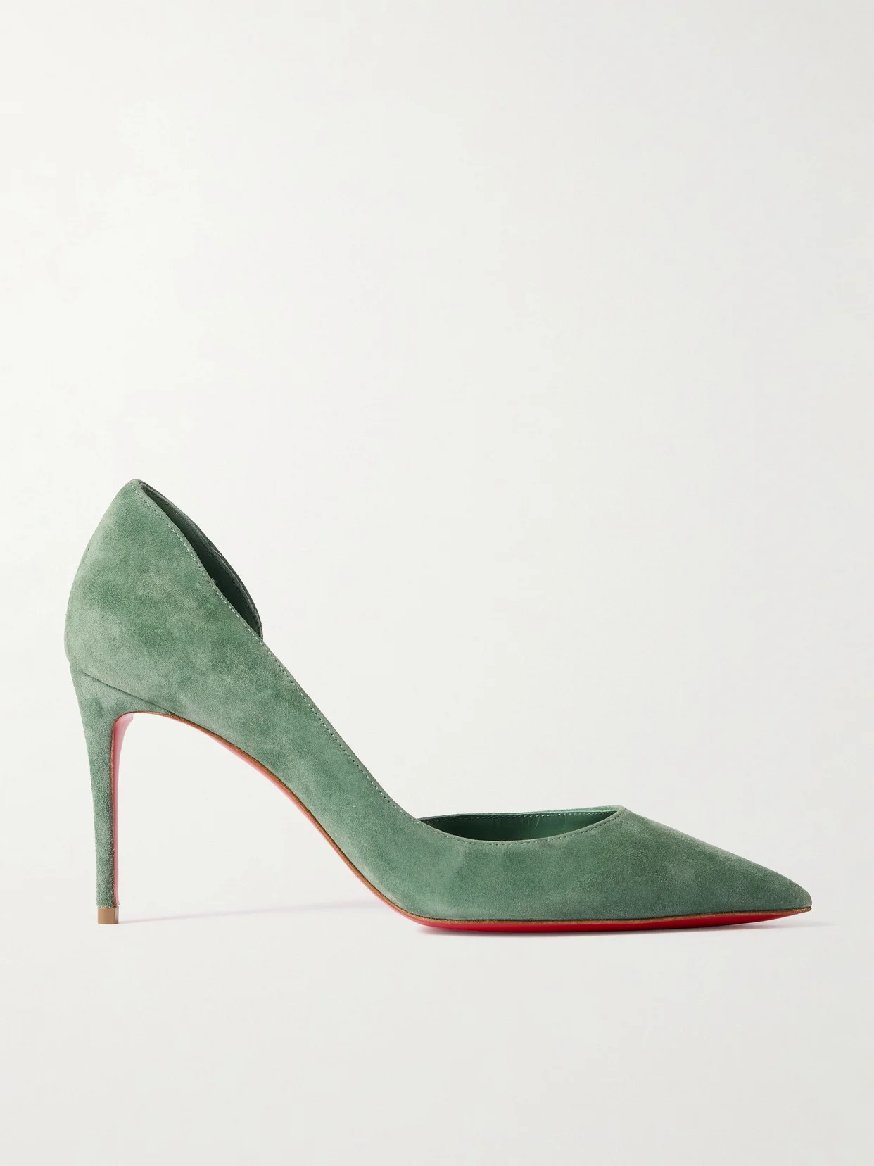 Elegant and timeless, Christian Louboutin's 'Iriza' pumps are the perfect option for important events. They're made from smooth sage-green suede in a d'Orsay shape with sleek pointed toes and, of course, the label's signature red bottoms.