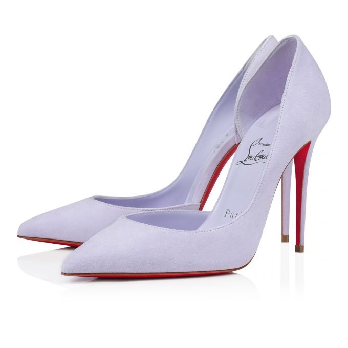 The Iriza asymmetrical pump showcases Maison Christian Louboutin's expertise with its enchanting sleek lines and timeless elegance. Set atop a 100 mm heel, this pump is crafted in Skylight mauve suede and has a pointed toe. An audacious cut-out design and exquisite finishing details complete the look. PRODUCT INFORMATION Reference: 1230776L277 Color: Purple Material: Suede Heel Height: 100 mm Collection: Summer 23