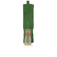 The Izamayaz low boot is a statement model by the Maison Christian Louboutin with a characteristic mix of elegance and iconoclasm. The boot is set on an 85 mm Ascot platform, reminiscent of a horse hoof, and a towering 130 mm ornate, strass-embellished plexi heel. Part of the Clue-inspired Loubi Mystery capsule collection, a collaboration with Istanbul-born Parisian designer Yaz Bukey, the upper is crafted in an opulent veau velours, in the capsule’s sumptuous Bahtche green. PRODUCT INFORMATION Reference: 3221151E535 Color: GREEN Material: Veau velours Heel Height: 130 mm Collection: Fall Winter 22
