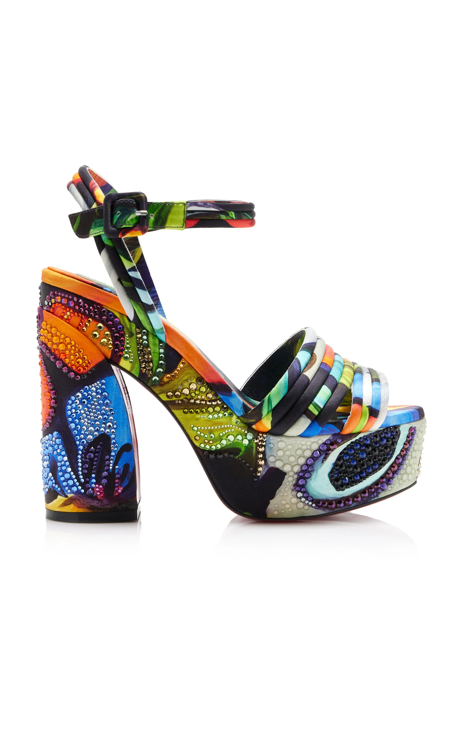 Jane Disco Crystal-Embellished Printed Satin Platform Sandals multi