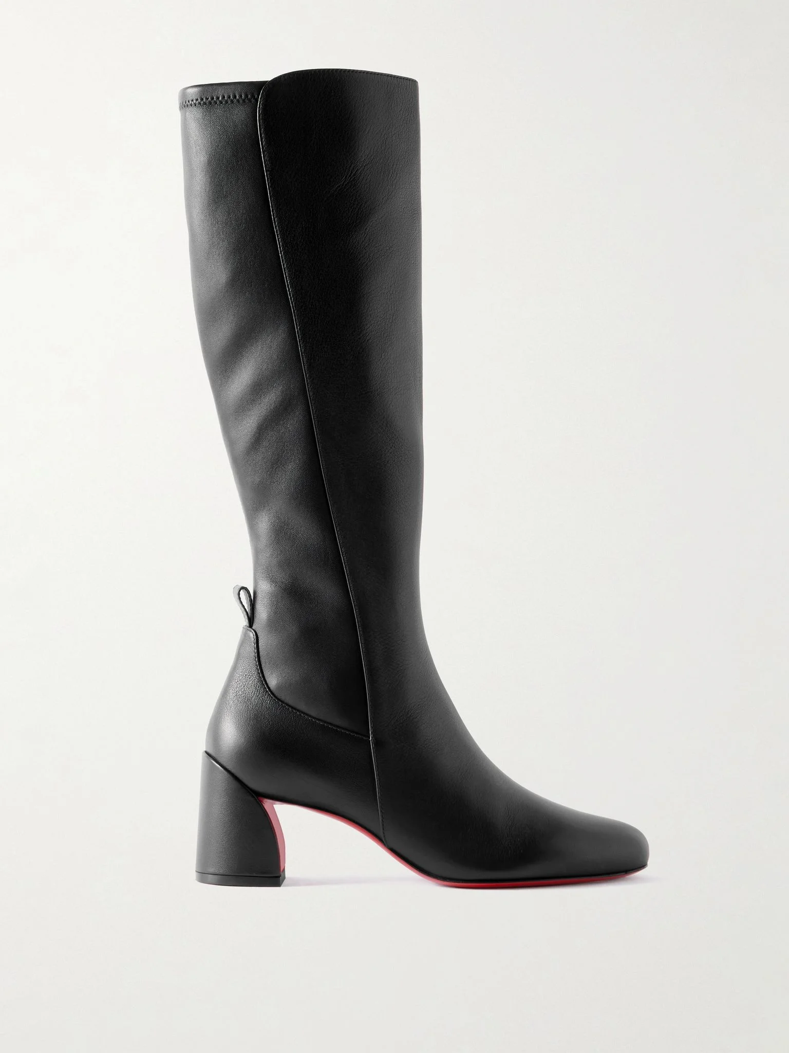 Christian Louboutin's 'Jane Botta' knee boots have a chic, '70s-inspired feel. Made in Italy from smooth leather, they're set on sculptural 55mm heels. Wear yours with everything from skinny jeans to flowy dresses. Size & Fit - Fits true to size, take your normal size - Italian sizing Details & Care - Heel measures approximately 55mm/ 2 inches - Black leather (Calf) - Zip fastening along side