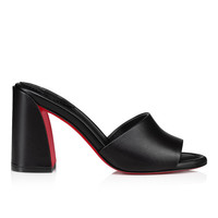 The Jane Mule sandal features a square, angled 85 mm heel. This delicate Maison Christian Louboutin style is crafted in black leather. The clean, slender strap elegantly dresses the foot. This summer style is enhanced with discreet finishing touches. Product information Material: Nappa leather Color: Black Reference: 1240728B439 Heel height: 85 mm Collection: Summer 24