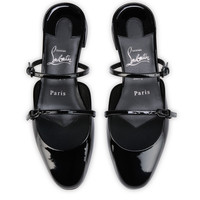 The Jane Nina mule evokes the codes of a timeless Mary Jane with a sophisticated contemporary twist. It features an elegant, rounded toe with a slender strap across the vamp and another further up the foot, adding a hint of modernity. The straps fasten with metallic buckles for an excellent fit. This Maison Christian Louboutin model is crafted from black patent calf leather with tonal lining. This model features an 'Everlasting Red' sole thanks to an innovative coating technique to ensure resistance and lasting vibrancy for our signature Louboutin red. Product information Reference: 1260579B439 Color: Black Material: Patent calf leather