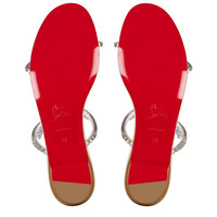 An emblematic Maison Christian Louboutin design, the Just Queenie shows off a minimalist style. It is held in place by two slender PVC straps adorned with hand-placed strass and crystals. The Leche beige leather is timeless. Product information Material: PVC Color: Leche Reference: 12407445786 Collection: Summer 24