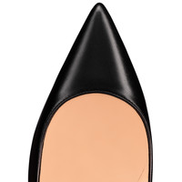 A Maison Christian Louboutin icon, the Kate is the essential stiletto with a timeless slim heel. This pump features an alluring pronounced arch and a revealing low-cut vamp with a pointed toe. This season, the Kate showcases a buttery soft Nappa Shiny leather in sophisticated black and a soaring 100-mm heel. An exquisite modern style complete with a signature daring red sole. Product information Material: Nappa leather Color: Black Reference: 3191410BK01 Heel height: 100 mm Collection: Fall Winter 19