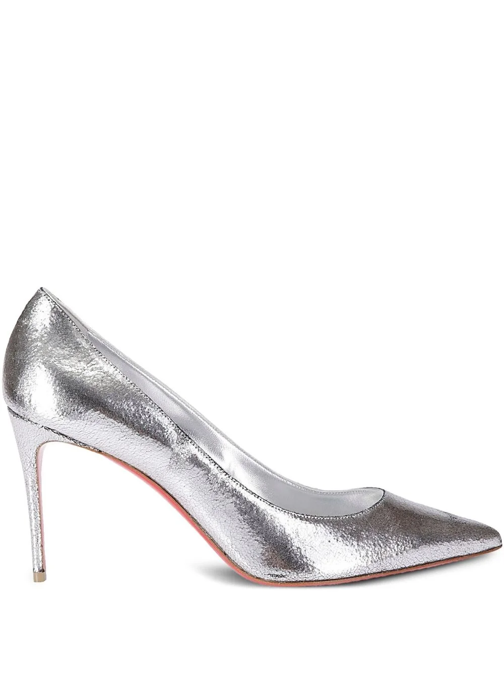 85mm Kate pumps Highlights - Silver-tone - Slip-on style - High stiletto heel - Metallic finish - Branded insole Made in Italy Composition Sole: Calf Leather 100% Outer: Metallic Leather 100% Lining: Calf Leather 100% SIZE & FIT Measurement HEEL 3.34 in(8.5 cm)