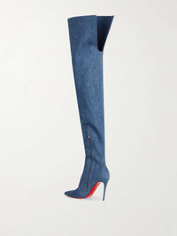 EDITORS'NOTES This version of Christian Louboutin's signature 'Kate' boots pull up over the knee, giving you so many more styling options. They're made from logo-embroidered denim and have the brand's signature red-lacquered soles. SIZE & FIT - Fits true to size, take your normal size - Italian sizing DETAILS & CARE - Heel measures approximately 100mm/ 4 inches - Blue denim - Zip fastening along side