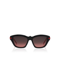 The Kate LB0026 sunglasses from Eyewear Collection 2 are inspired by the iconic Christian Louboutin Kate decollete. The frame's meticulously sculpted curves evoke the architectural grandeur of classic French landmarks, transforming these glasses from a mere accessory into a true statement piece. This style showcases a butterfly shape. The crafted bilayer black and transparent red base acetate is adorned with a red sole signifier on the hinge, serving as an iconic detail, paired with high-performance Zeiss red gradient smoke lenses that offer exceptional quality, comfort, and durability in an exclusive color made only for the Christian Louboutin collection. Dimensions: - Lens width: 53mm - Bridge: 17mm - Temple length: 140mm These frames are suitable to add prescription lenses. Made in Italy. Product information Reference: 1265188K197 Color: Black smoke Material: Acetate Lens width: 53 mm Bridge length: 17 mm Temple length: 140 mm Category of filtration: 3