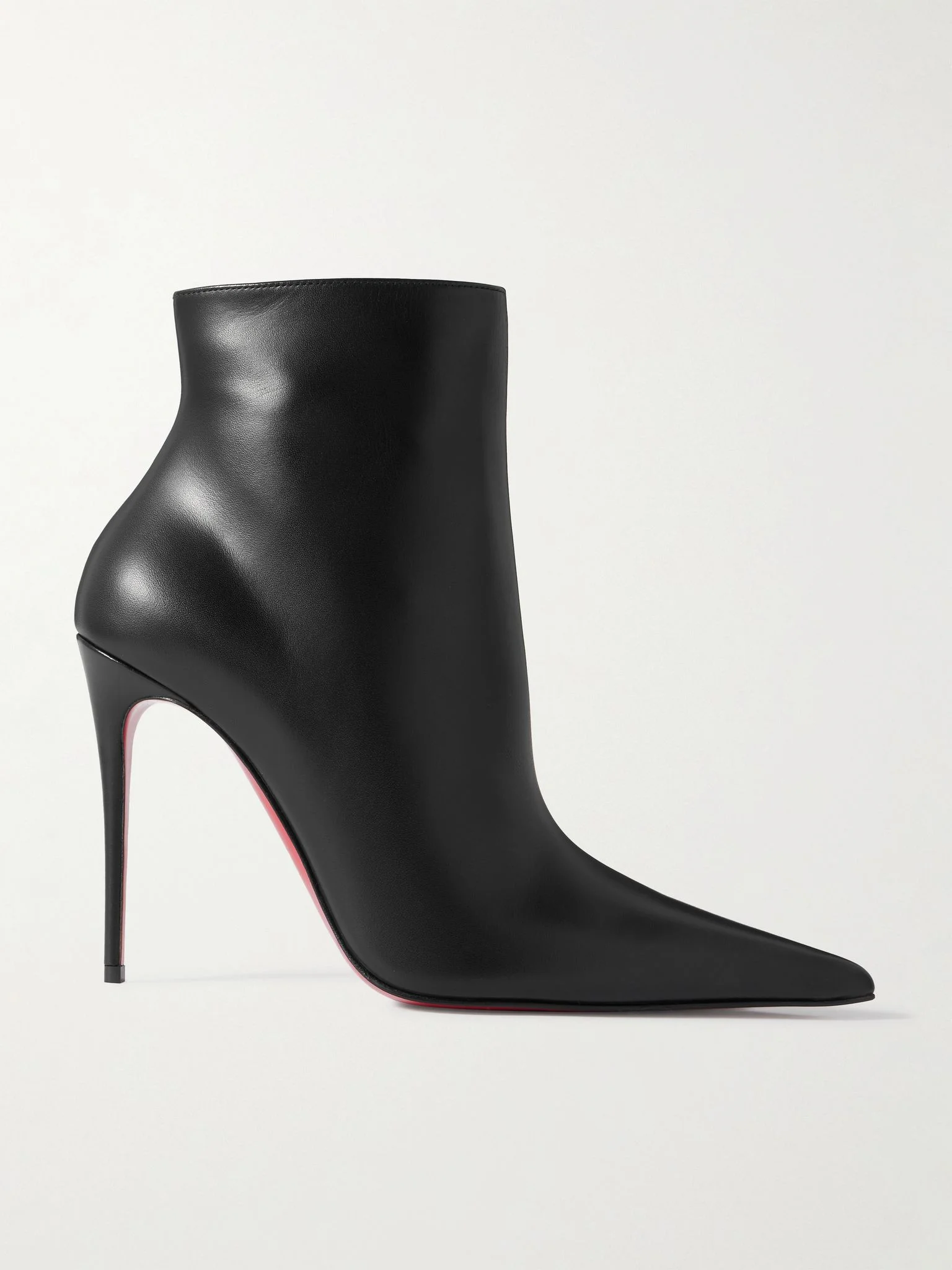 Christian Louboutin's 'Kate Max' ankle boots will make so many outfits look super chic. They're made from smooth leather with sharply pointed toes and 100mm stiletto heels. Naturally, they're set on the label's signature red lacquered soles. Size & Fit - Fits true to size, take your normal size - Italian sizing Details & Care - Heel measures approximately 100mm/ 4 inches - Black leather (Calf) - Zip fastening along side