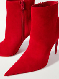 Christian Louboutin's 'Kate Max' ankle boots will make so many outfits look super chic. They're made from smooth suede with sharply pointed toes and 100mm stiletto heels. Naturally, they're set on the label's signature red lacquered soles. Details & Care - Heel measures approximately 100mm/ 4 inches - Red suede (Calf) - Zip fastening along side