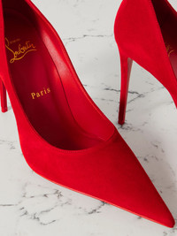 Christian Louboutin's 'Kate Max' pumps are as iconic as the supermodel that originally inspired them. They’re crafted from plush suede with pointed toes and rest on razor-thin 100mm stilettos. Wear yours with leather pants, gowns and midi lengths. Size & Fit - Fits true to size, take your normal size - Italian sizing Details & Care - Heel measures approximately 100mm/ 4 inches - Red suede - Slip on