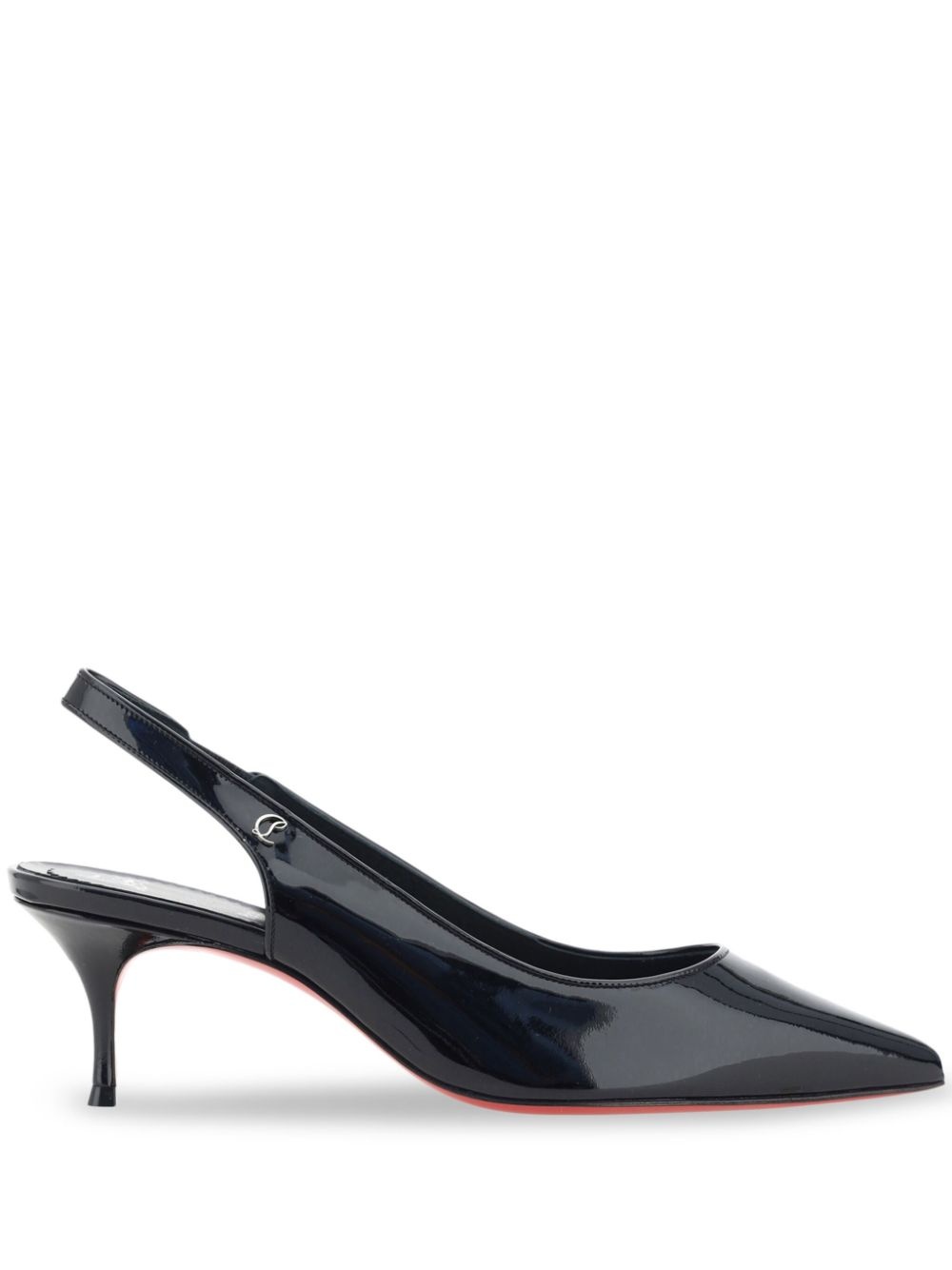55mm Sporty Kate slingback pumps Highlights - Black - Leather - Patent finish - Signature red sole - Applique logo - Pointed toe - Slingback strap - Branded leather insole - 55mm kitten heel - Leather sole - Slip-on style Made in Italy Composition Outer: Patent Calf Leather 100% Lining: Leather 100% Sole: Leather 100%