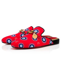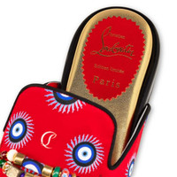 The Konstantimule flat takes inspiration from Maison Christian Louboutin's laidback Coolito sandal. It is part of the Greekaba collection which tells the story of Christian Louboutin’s travels in the Cyclades in pictures. The capsule is named after Konstantin Kakanias, the illustrator who worked on the fabric designs. This model, crafted in crepe satin loubi eye, both inside and out, showcases a Greek-style bracelet adornment across the toe. This pair is a limited edition. It is numbered and stamped with the mention “Edition limitée” on the insole. PRODUCT INFORMATION Reference: 3220084J988 Color: Multicolor Material: Crepe Satin Collection: Fall Winter 22