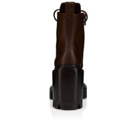 The Lace Up College boot features a notched sole and sits on a 100 mm square heel. Crafted entirely from Cosme brown waxed leather, the tongue is adorned with perforations. A trendy Maison Christian Louboutin model with a heel tab and lacing inspired by mountain boots. Product information Reference: 12501087086 Color: Cosme Material: Calf leather Heel Height: 100 mm