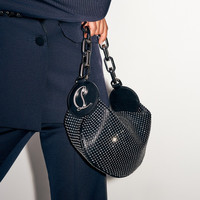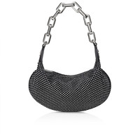 The Le 54 shoulder bag features audacious lines for a contemporary effect. This Maison Christian Louboutin model is designed in black nappa leather and mesh and sprinkled with golden strass. It showcases a chunky silver chain and contrasting CL logo. - 25 cm/9.8 inch chain allows it to be carried over the shoulder. - Zip closure - 1 main compartment - Dimensions: - H 7.5 x L 12 x W 3 inches - H 19 x L 30 x W 8 cm Product information Material: Nappa leather Color: Black Reference: 3245143B781 Collection: Fall Winter 24
