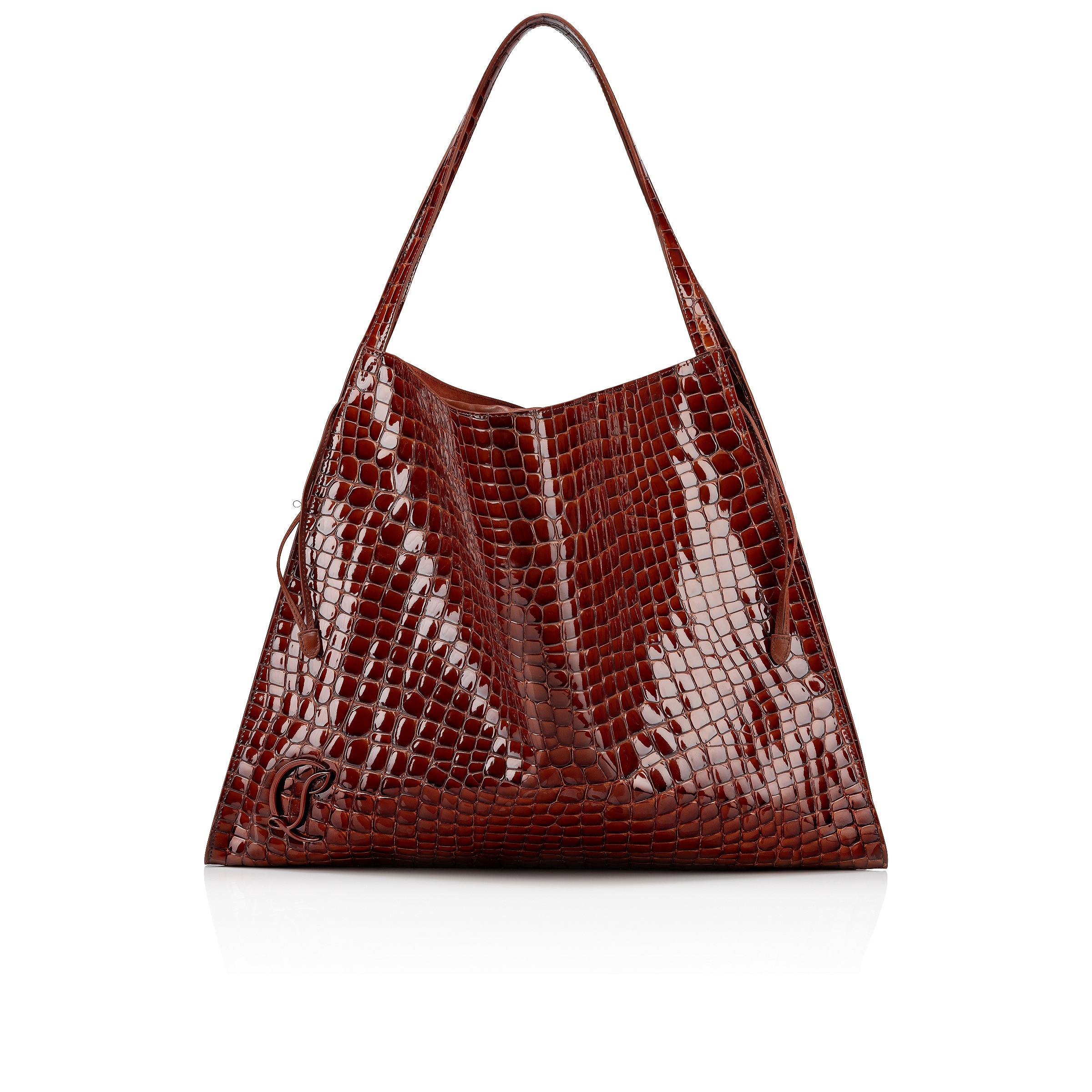 Spacious and elegant the Le 54 tote bag showcases modern lines. This model in chestnut brown is crafted in alligator embossed calf leather. A tonal Maison Christian Louboutin logo adorns the side. - Two handles 34 cm/13.4 inch handles allow it to be carried over the shoulder - Sliding lace closure - 1 main compartment with a zipped pocket - 2 side pockets - Dimensions: - H 15.5 x L 20 x W 3 inches - H 39 x L 50 x W 7 cm Product information Reference: 32451407025 Color: Acajou Material: Calf leather Dimensions: 390mm x 500mm x 70mm