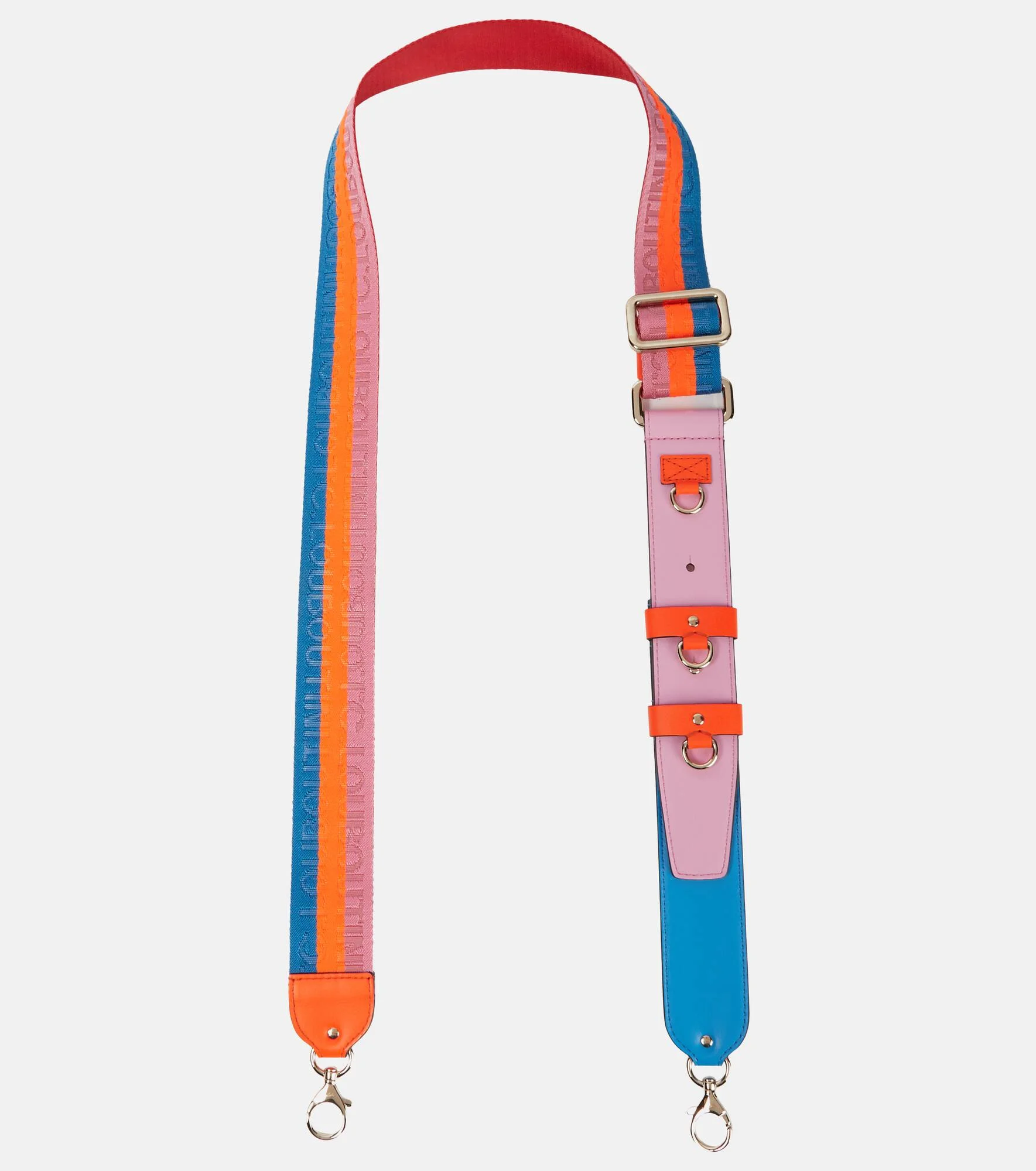 Attach this strap from Christian Louboutin to your favorite arm candy from the label's extensive bag offering. The colorful buckled design is made from branded cotton jacquard with leather trims and hooks on each end. - material: fabric - trim: leather - internal details: leather lining, fabric lining - colour of fastening and strap: pale gold - Made in Italy - comes with dust bag - Designer colour name: Multi/Multi