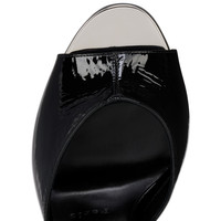The Lock Me Up Sandal is adorned with a strap embellished with a signature monogrammed clasp lock, alluding to the designer's Egyptian inspiration. This shoe is set on a 100 mm heel and is crafted from black Patent Vog calfskin leather. This sophisticated sandal from Christian Louboutin has an open toe.The "Vog patent leather" material, being more flexible, offers better suppleness. Its wrinkled effect may have slight variations between the photo and the product. Product information Reference: 1250105B439 Color: Black Material: Patent leather Heel Height: 100 mm