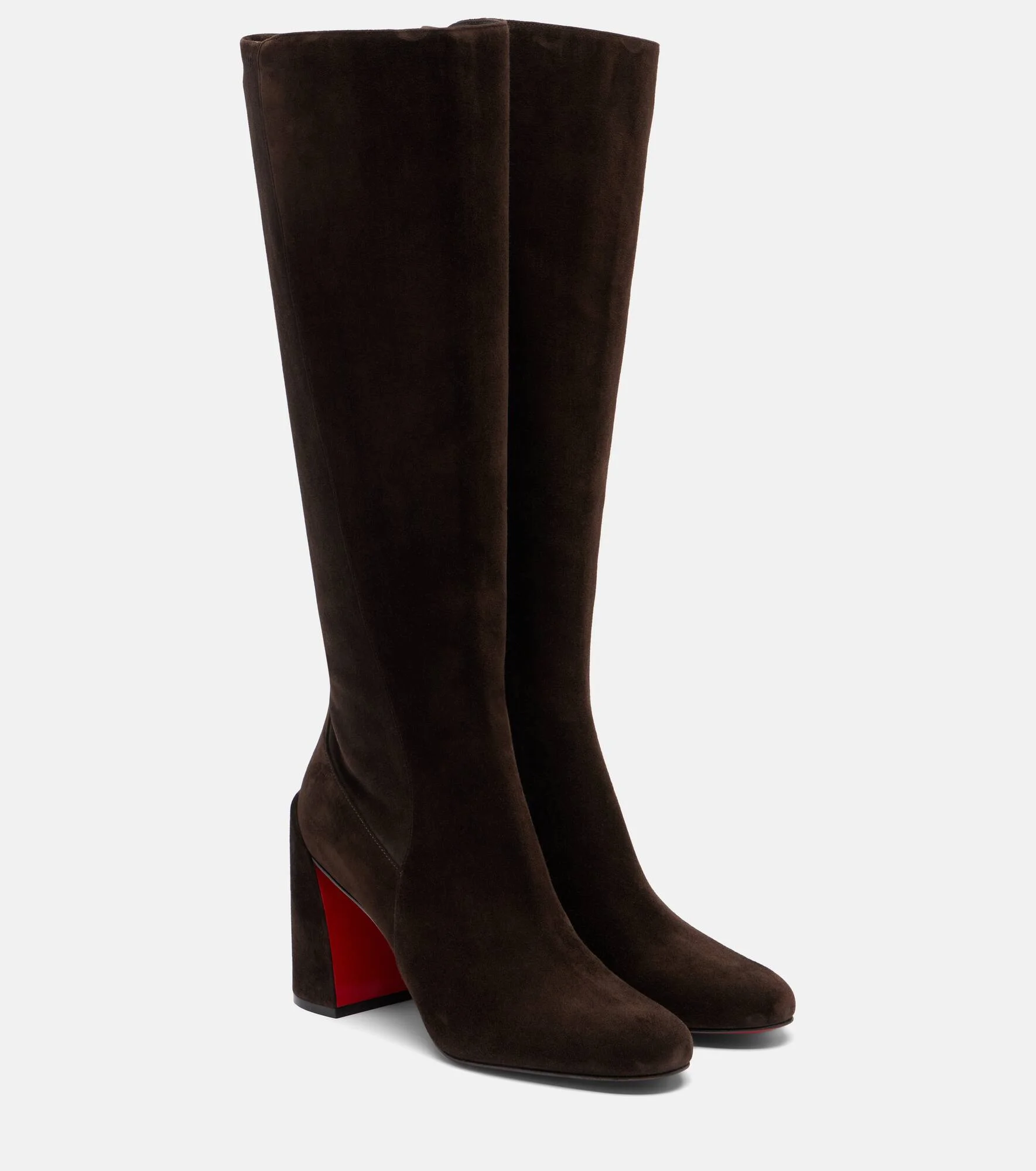 Finished with Christian Louboutin's iconic red soles, the Loo over-the-knee boots make every step you take a sophisticated one. Crafted from suede, the pair features a mid-thigh silhouette and 85mm block heels. Product Details - Upper: calf leather (suede) - Lining: leather - Sole: leather insole, signatured red leather and rubber sole - Toe shape: round toe - Made in Italy - Includes: shoe box, dust bag - Designer color name: Cafe - Item color: brown - Closure: zipped side - Item number: P01082541