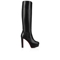 The sophisticated Loo Botta Alta ankle boot is made entirely from black calf leather. This urban Maison Christian Louboutin model is set on a 130 mm straight heel. With an almond-shaped toe, it has a sleek, knee-length tubular silhouette. Product information Reference: 1250132BK01 Color: Black Material: Calf leather Heel Height: 130 mm