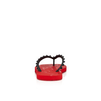 The Loubi Flip Donna epitomizes the simplicity of summer with a high fashion twist. At first glance a simple flip-flop, the signature Christian Louboutin details are exquisite. Iconic spikes molded directly into the strap, flexible, lightweight, smooth rubber and a red sole with signature on both the insole and outer. This model is crafted in a Black and Loubi Red. Product information Material: Rubber Color: Black Reference: 1210655H358 Collection: Summer 20