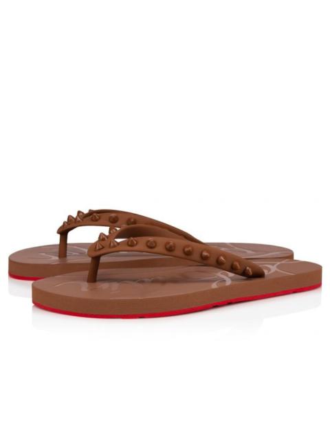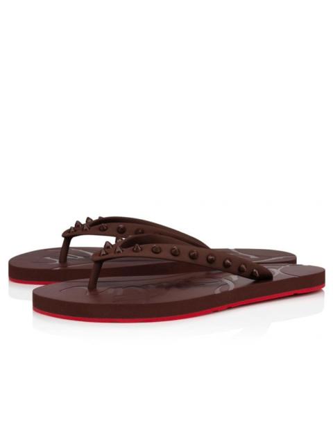 The Loubi Flip woman epitomizes the simplicity of summer with a high fashion twist. At first glance a simple flip-flop, the signature Christian Louboutin details are exquisite. Iconic spikes molded directly into the strap, flexible, lightweight, smooth rubber and a red sole with signature on both the insole and outer. This model is crafted in an all-over White. Product information Material: Rubber Color: White Reference: 1210655WH01 Collection: Summer 20