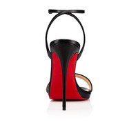 A slim platform and lofty 120mm wrapped stiletto add leg-lengthening lift to Christian Louboutin’s Loubi Queen in black nappa leather. The open toe sandal is an elegant minimalist look that finds inspiration in traditional French cabaret. A graceful ankle strap, recalling the world of beautiful dancers and choker necklaces, is anchored with two thin straps reaching around and under the naked heel for added glamour. Product information Material: Nappa leather Color: Black Reference: 1191582BK01 Heel height: 120 mm Collection: Summer 19