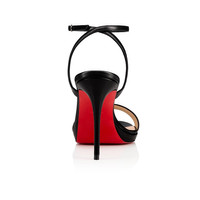 A slim platform and lofty 100mm wrapped stiletto add leg-lengthening lift to Christian Louboutin’s Loubi Queen in black nappa leather. The open toe sandal is an elegant minimalist look that finds inspiration in traditional French cabaret. A graceful ankle strap, recalling the world of beautiful dancers and choker necklaces, is anchored with two thin straps reaching around and under the naked heel for added glamour. Product information Material: LEATHER Color: BLACK Reference: 1191580BK01 Heel height: 100 mm Collection: Summer 19