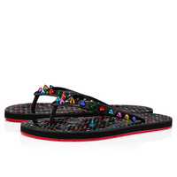 The Loubi Flip Spikes Donna flip-flop has charming and simple clean lines and sits on a black rubber sole bearing the designer's signature. It has a round toe and a slim rubber V-strap enhanced by the brand's signature metallic spikes, which evoke multicolored confetti. This original model embodies Maison Christian Louboutin's innovative prowess. PRODUCT INFORMATION Reference: 1220794J277 Color: BLACK/MIX MULTI Material: Rubber Collection: Summer 22