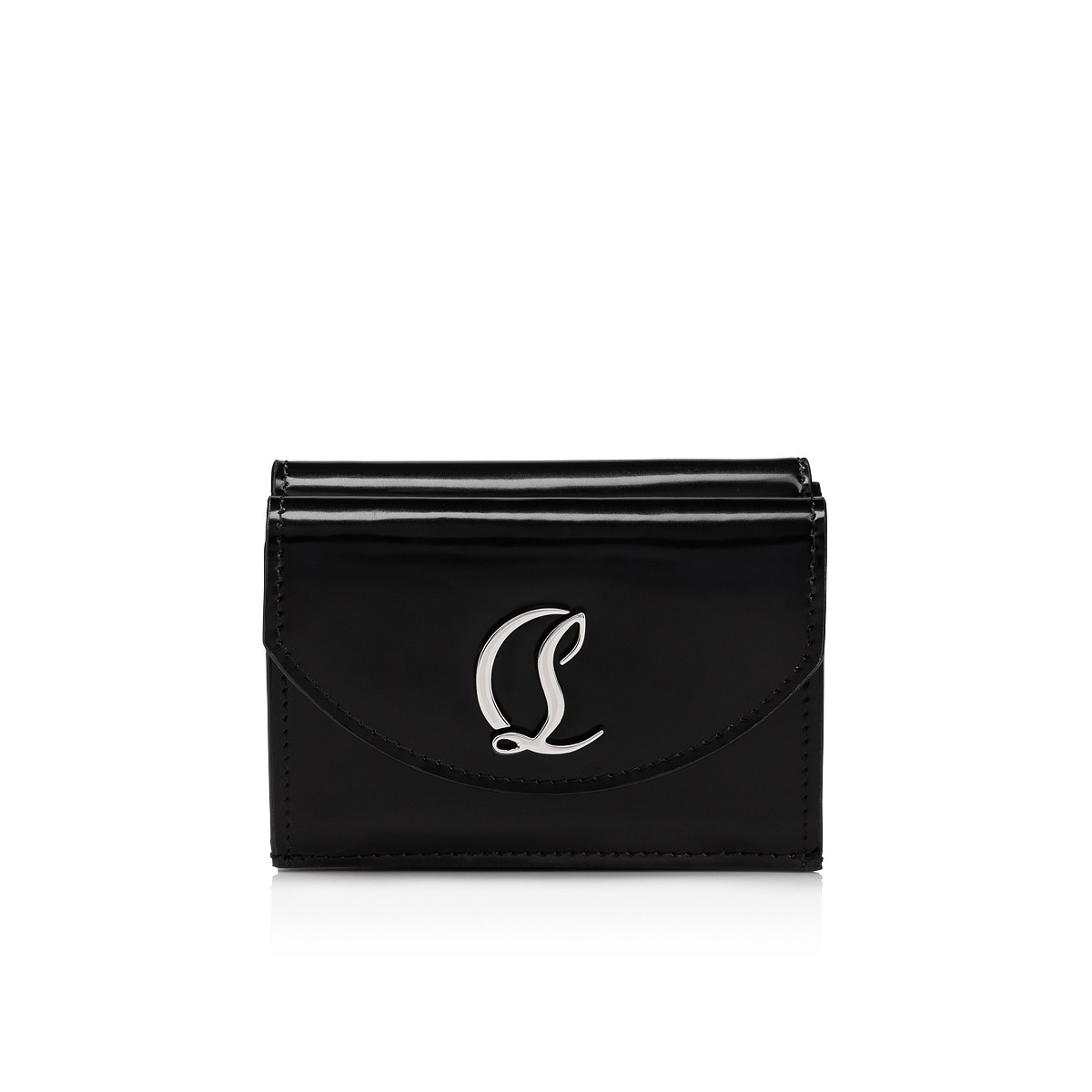 With its sleek lines, the elegant Loubi54 wallet showcases Maison Christian Louboutin's sophistication. This model has a rounded design and is adorned with a silver CL monogram. It is crafted in abrasivato black leather. - Coin pocket with magnetic clasp - 1 pocket and 3 card slots lined in iconic Loubi red - Dimensions: H 70 x L 95 x W 30 mm Product information Material: Calf leather Color: Black Reference: 1235240B078 Dimensions: 70mm x 95mm x 30mm Collection: Summer 23