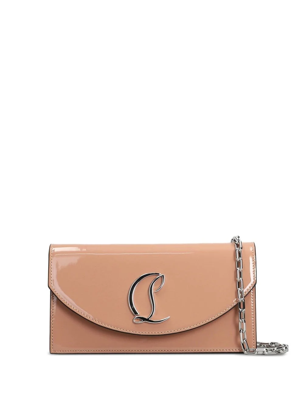 Loubi54 clutch bag Highlights - Poudre pink - Foldover top with magnetic fastening - Detachable chain-link shoulder strap - Internal card slots - Applique logo Made in France Composition Outer: Patent Leather 100% SIZE & FIT Measurement DEPTH 2.16 in(5.5 cm) HEIGHT 4.52 in(11.5 cm) WIDTH 8.66 in(22 cm)