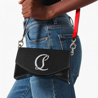 With its sleek lines, the elegant Loubi54 shoulder bag in size small showcases Maison Christian Louboutin's sophistication. This model has a graphic appeal evoking the arch of a foot and is adorned with a CL monogram in strass. It is crafted in abrasivato black leather. - Adjustable for hand, shoulder or crossbody with a removable strap - Interior pockets and multiple card slots lined in iconic Loubi red - Dimensions: H 110 x L 190 x W 80 mm PRODUCT INFORMATION Reference: 1235233BK1D Color: Black Material: Calf leather Dimensions: 110mm x 190mm x 80mm Collection: Summer 23