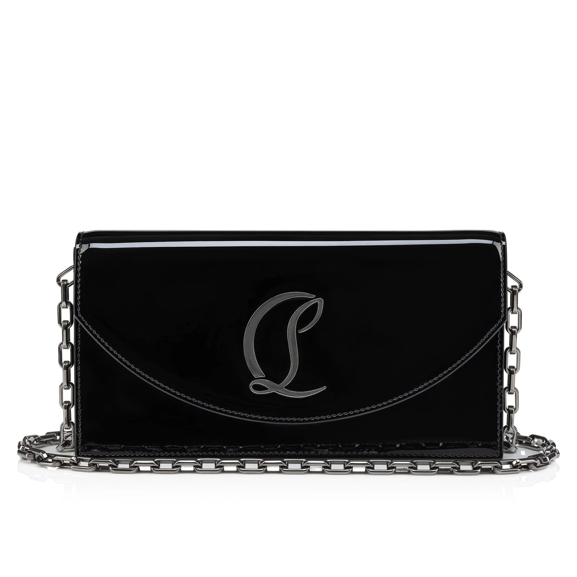 An iconic Maison Christian Louboutin design, the Loubi54 clutch features sleek lines. This elegant model has a tone-on-tone CL monogram on the front and is crafted in black patent calf leather. - A removable 114 cm/44.9 inch leather-reinforced chain strap allows it to be carried by hand or over the shoulder - Magnetic fastening - 1 interior pocket - 3 credit card slots - Dimensions: - H 4.7 x L 8.6 x W 2.1 inches Product information Reference: 3245297B078 Color: Black Material: Patent calf leather Dimensions: 120mm x 220mm x 55mm